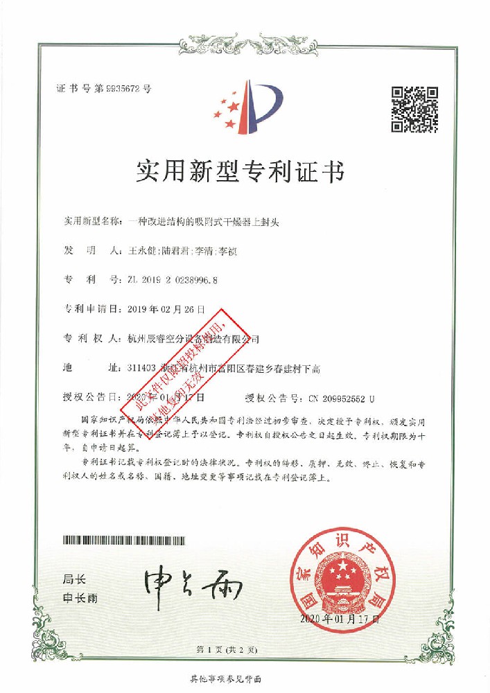 一種改進結(jié)構(gòu)的吸附式干燥器上封頭