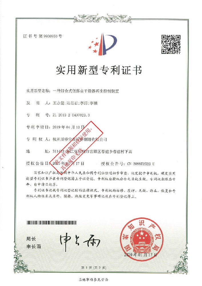 一種組合式低露點干燥器再生控制裝置